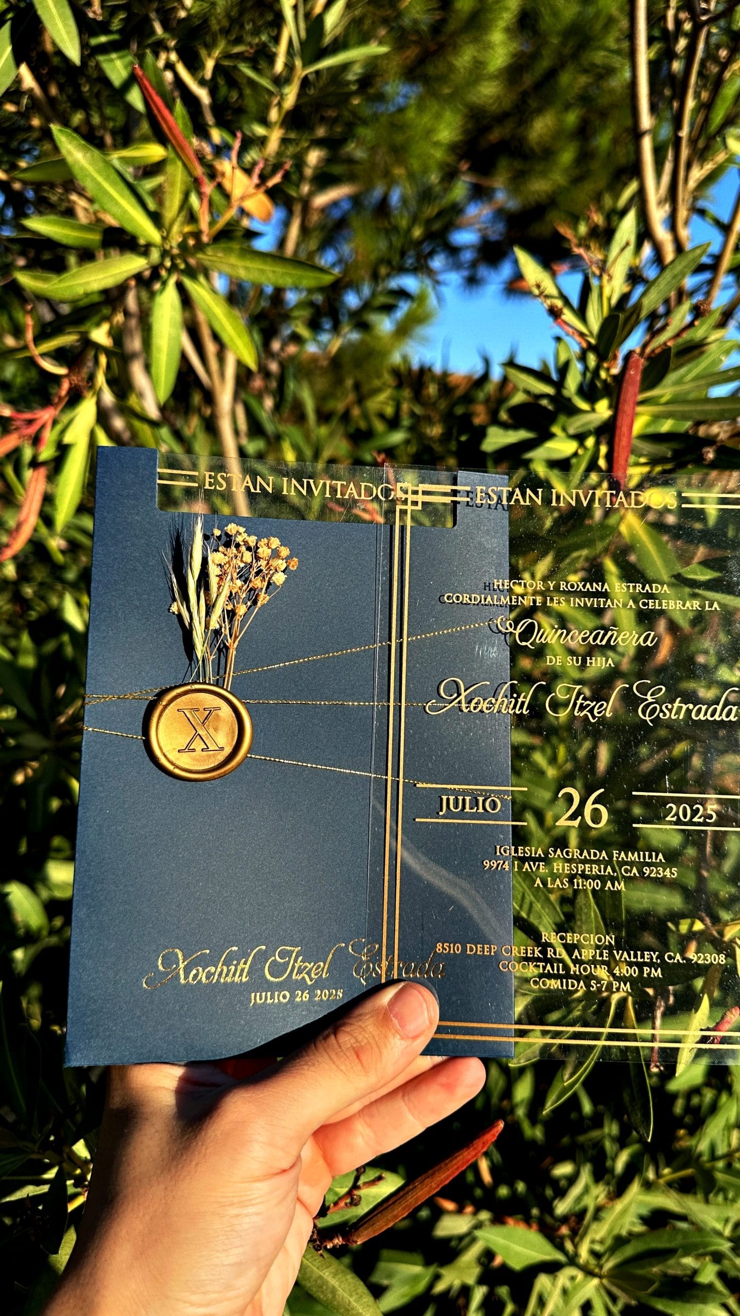 Acrylic Wedding Invitation – Elegant Clear Card with Floral Wax Seal