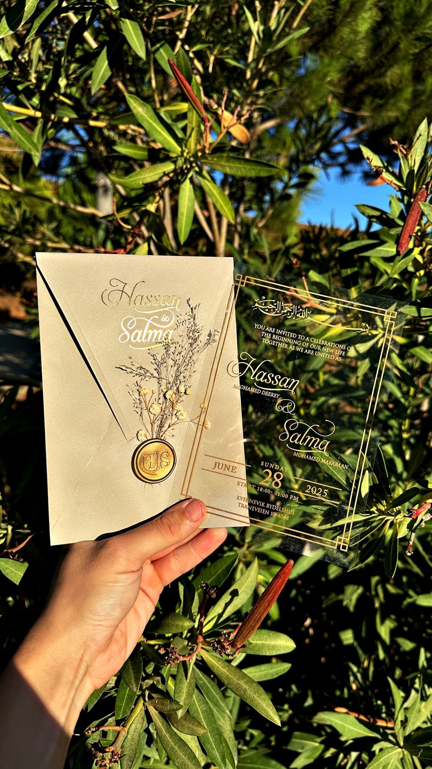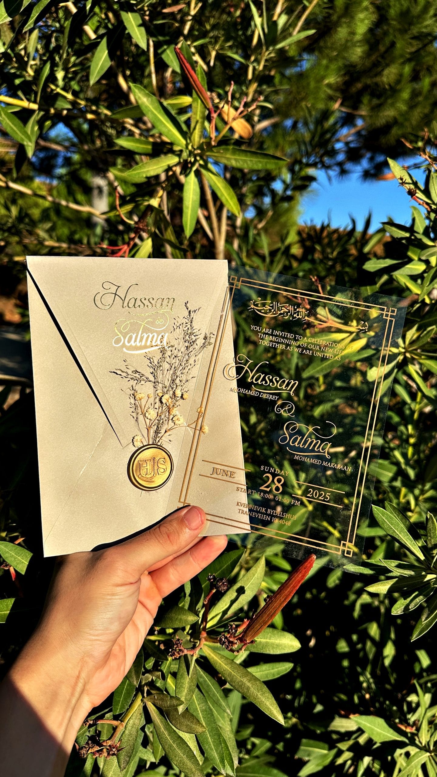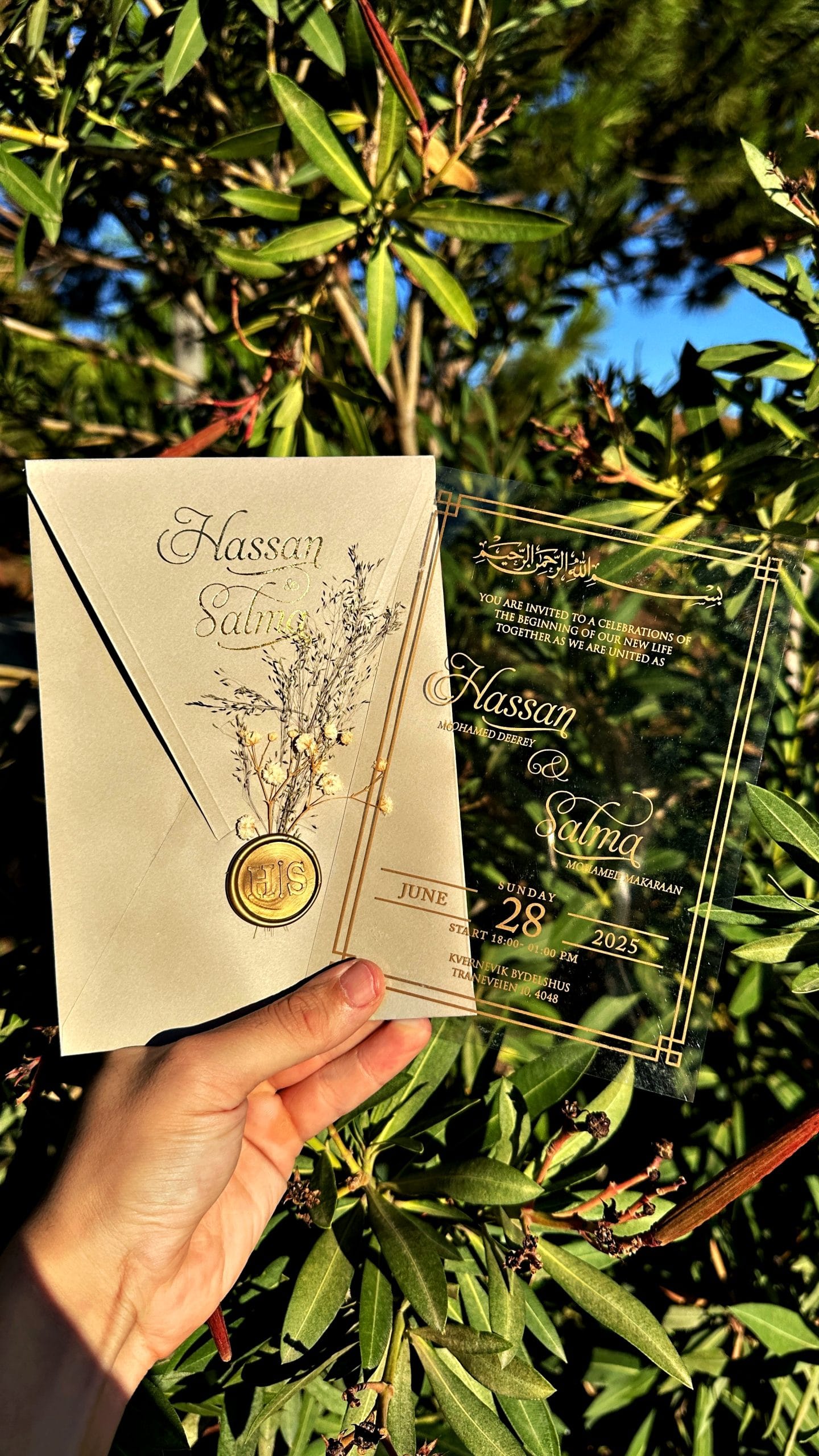 • You can include a monogram, logo, or decorative elements (e.g. Bismillah calligraphy, heart icon, initials, etc.).